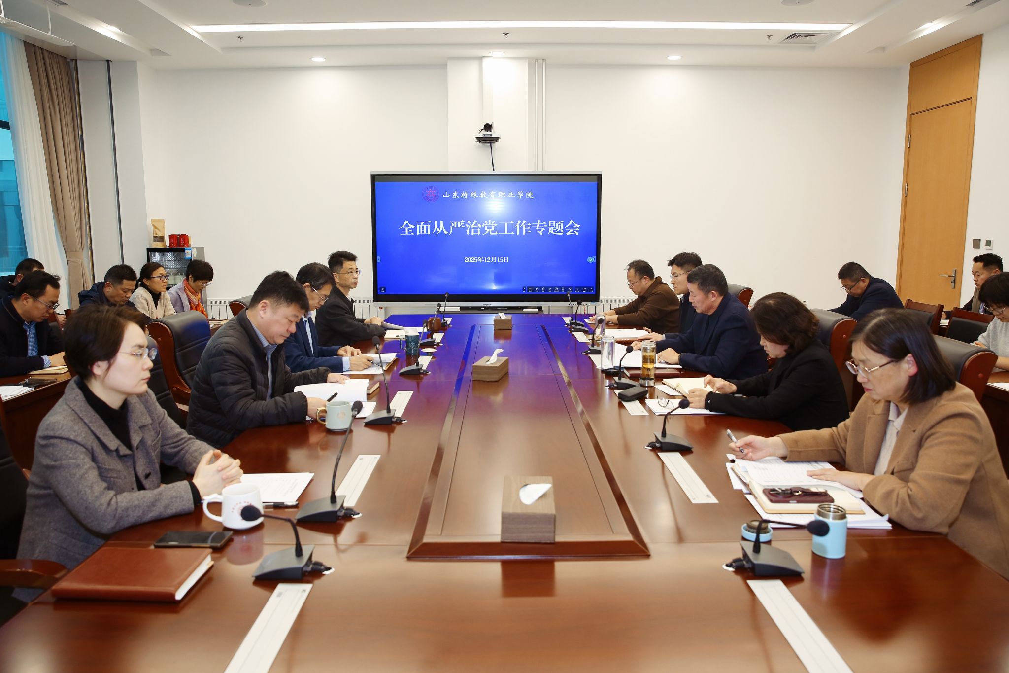 为深入学习贯彻党的二十届四中全会精神,深刻领悟习近平总书记关于全面从严治党的重要论述,总结学院全面从严治党和党风廉政建设工作,认真履行管党治党政治责任,持续巩固学院风清气正的政治生态。12月15日下午,学院召开2025年全面从严治党工作专题会,党委书记杨磊主持会议并讲话。