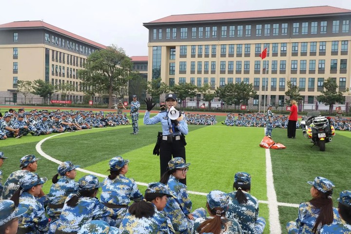 9月16日上午,长清区公安分局宣传科民警、交警大队民警庞漪及顺兴路派出所民警走进学院操场,为大一新生带来了一场别开生面的安全教育课。