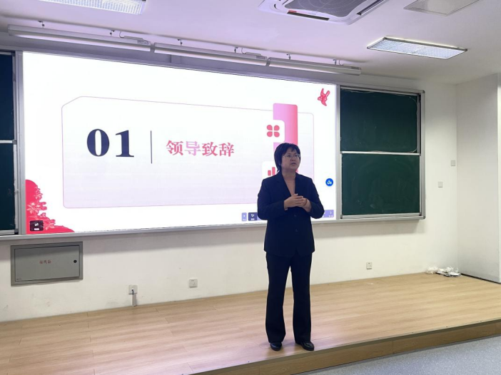 系党支部书记周琴上台讲话。她强调,坚持“党建带团建”,根本在于坚持党的全面领导,确保团委学生会工作坚持正确政治方向。她对学生会提出三点要求:一要提高政治站位,以党的创新理论武装头脑,引领广大同学坚定理想信念;二要夯实组织建设,发挥先锋模范作用;三要聚焦主责主业,在服务同学与校园文化建设中提升能力,成长为担当民族复兴大任的时代新人。