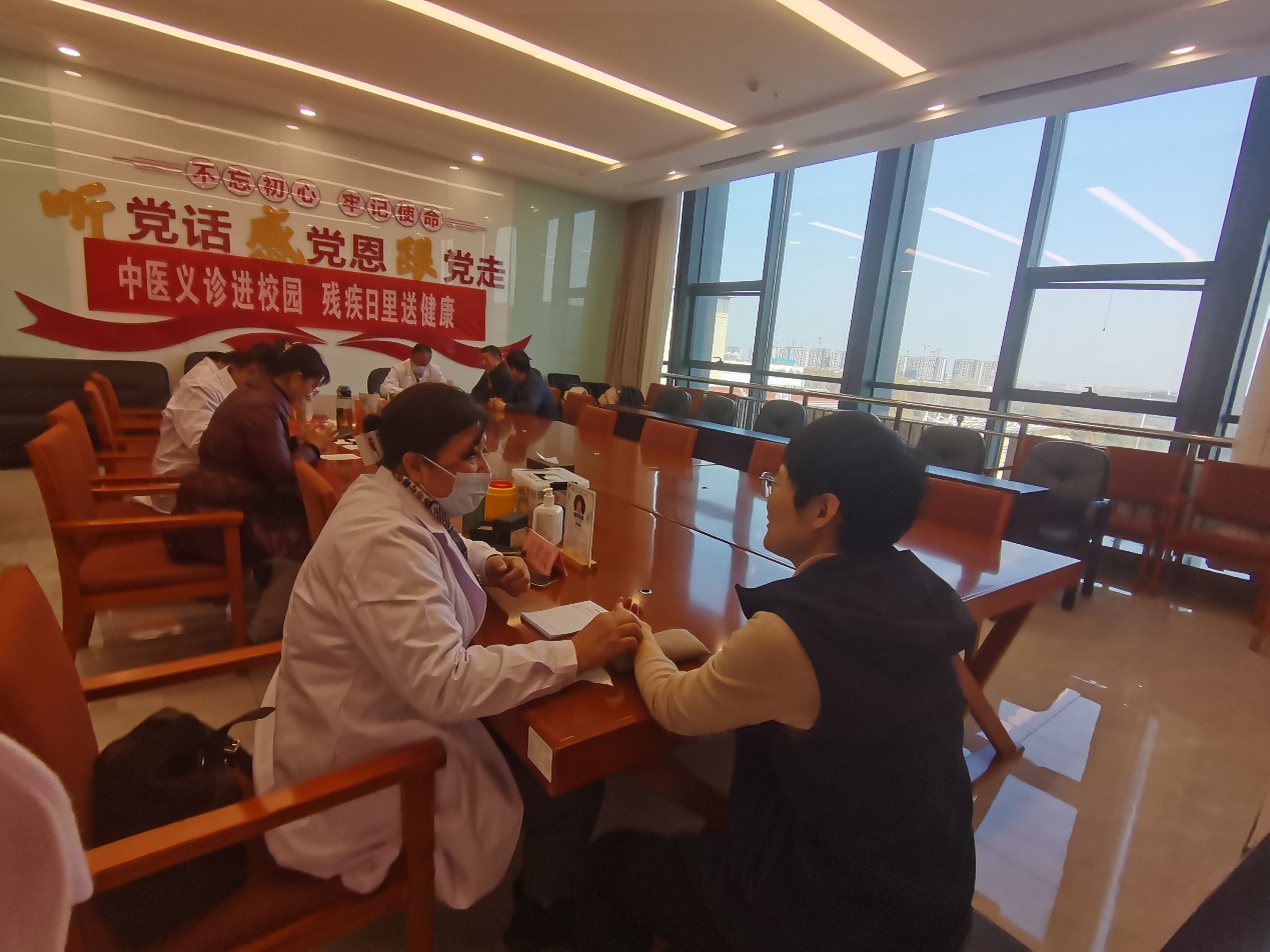在第34个国际残疾人日来临之际,学院综合门诊部邀请山东新中鲁中医医院专家团队来校为师生开展公益义诊活动,旨在为师生提供优质医疗服务,并传播中医药文化及健康养生理念。