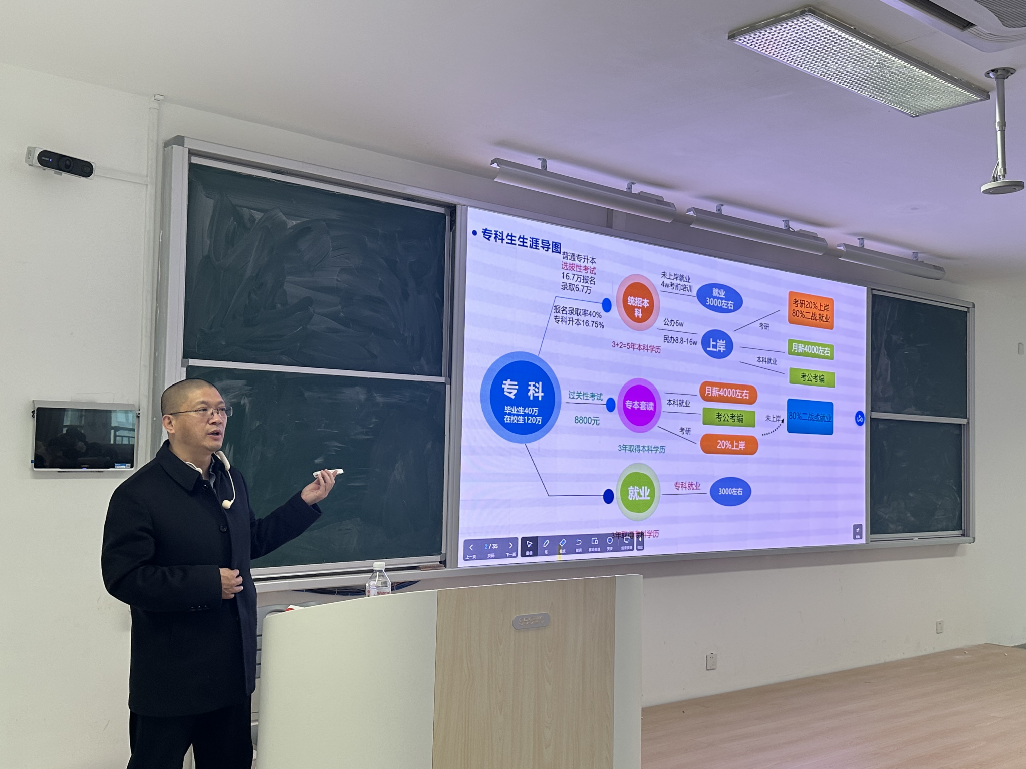 卢立华校长从当前职业教育与学历提升的政策背景出发,围绕“专科生如何实现学历提升与生涯规划”这一主题,讲解学历提升的重要性,并系统介绍了普通高等教育专升本、成人高考专升本、自学考试专升本和国家开放大学专升本四大主流升学途径。他结合最新政策动态、真实数据与典型案例,对各类升学途径的报名条件、学习方式、考试难度、毕业证书含金量等方面进行了深入浅出的对比分析,帮助学生清晰了解不同升学路径的优势与适用场景。