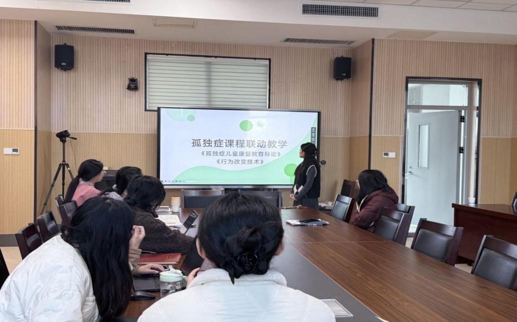 秦鲁鑫、史书雪、陈西梅、梁斐、展慧玲等多位老师联合开展“《孤独症儿童心理与教育》及《特殊儿童康复技能》课程重点解析”活动。研讨会明确了两门课程的核心教学目标与内容重点,并围绕项目化学习、情景化教学等创新方法展开深入交流,协同推动课程建设与教学创新。