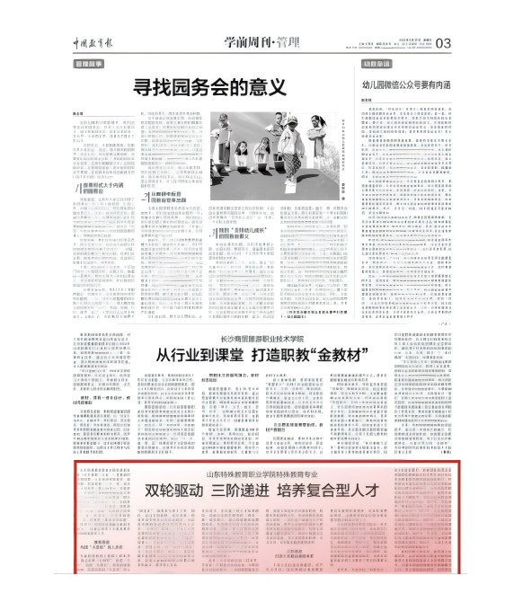 《中国教育报》出版专栏“山东特殊教育职业学院特殊教育专业:双轮驱动 三阶递进 培养复合型人才”内容介绍,总结十余年深耕特教人才培养的经验成果,进一步提升了专业品牌的知名度与影响力。