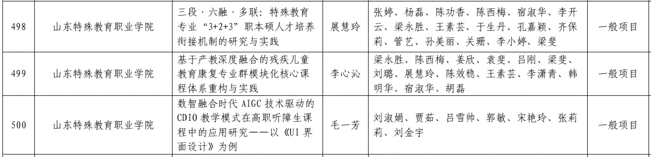 系部成功获批两项山东省2025年度职业教育改革课题。《三段•六融•多联:特殊教育专业“3+2+3”职本硕人才培养衔接机制的研究与实践》《基于产教深度融合的残疾儿童教育康复专业模块化核心课程体系重构与实践》。