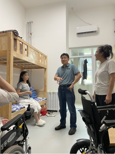 走访中,车院长一行逐间走进宿舍,与新生及家长亲切交谈,详细询问同学们的住宿环境适应情况、生活需求及入学感受,细心查看宿舍设施配置,叮嘱大家注意用电安全与个人健康。针对部分特殊需求学生,重点了解无障碍设施使用情况,现场协调解决生活中的实际问题。