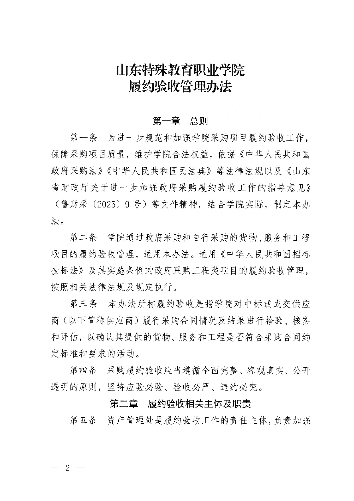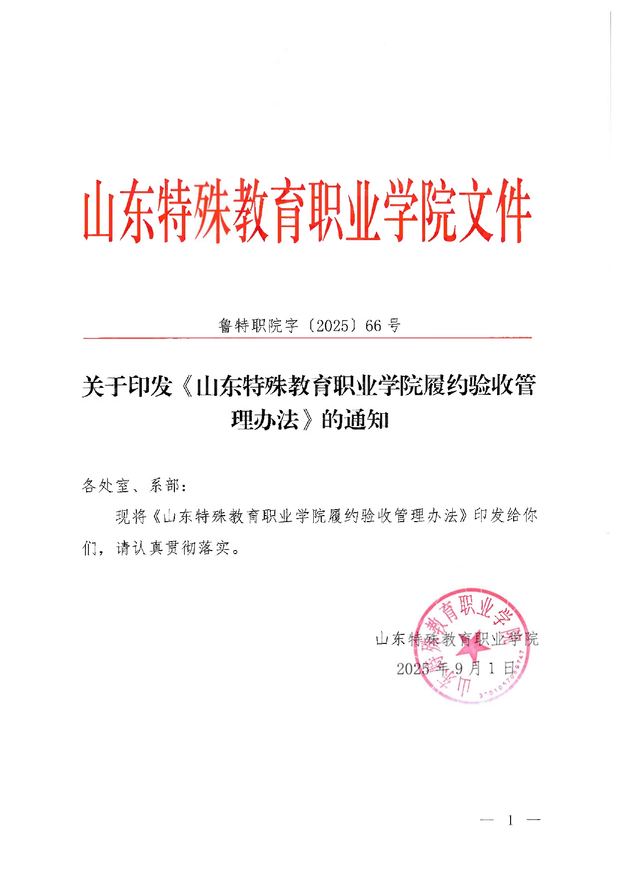 关于印发《山东特殊教育职业学院履约验收管理办法》的通知